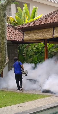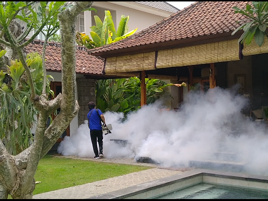 1. Foging Asap adalah sistem pengasapan dengan menggunakan mesin yang biasa kita kenal dengan nama mesin fogging, biasanya diaplikasikan di luar ruangan seperti halaman rumah, selokan dan semak-semak.
